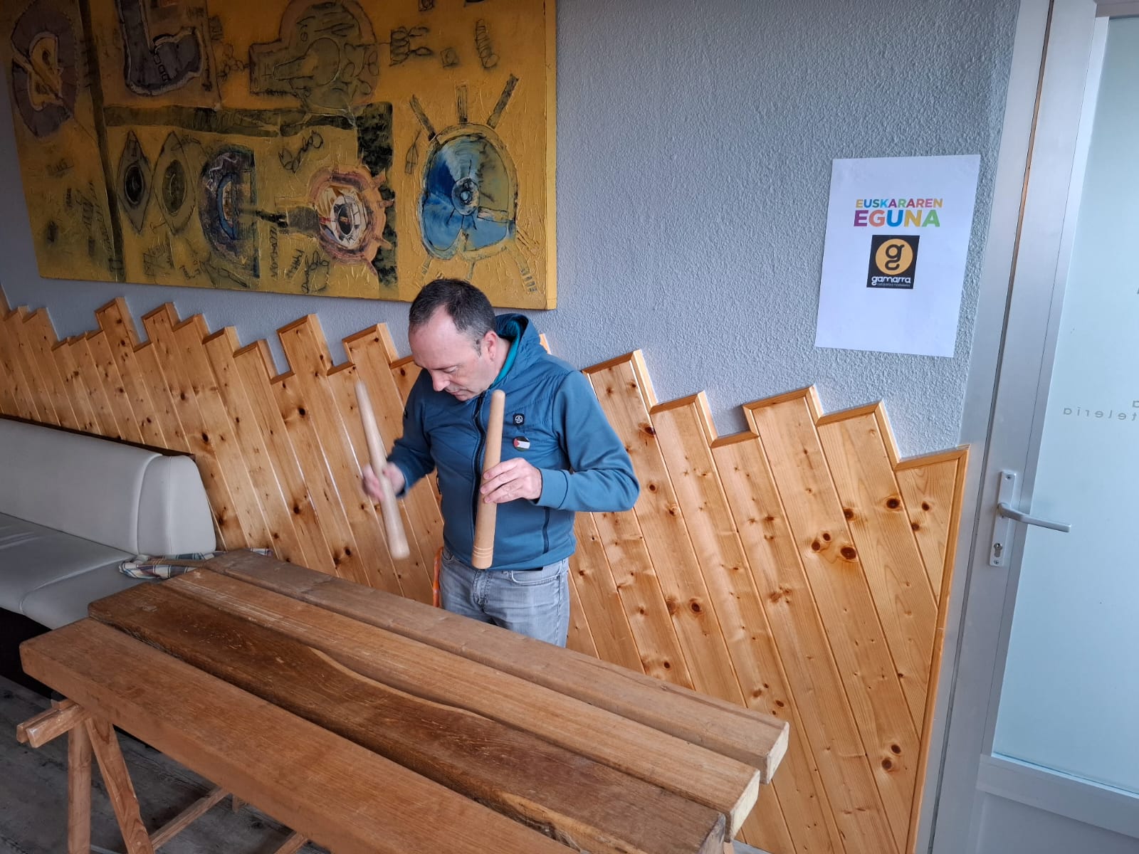 Durante toda la mañana se han celebrado muchas actividades, hemos podido tomar euskal kafea goxo-goxoa amenizado por la Txalaparta.