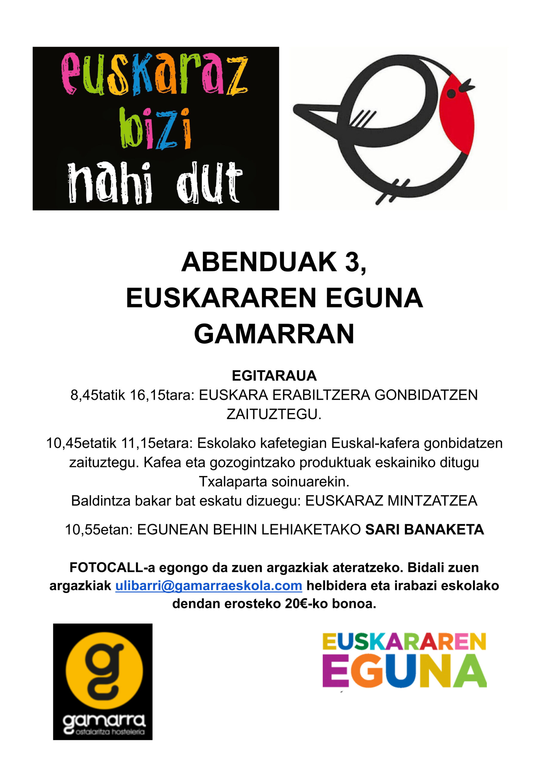 Datorren abenduaren 3an ospatuko dugun Euskararen eguneko egitaraua hor duzue.