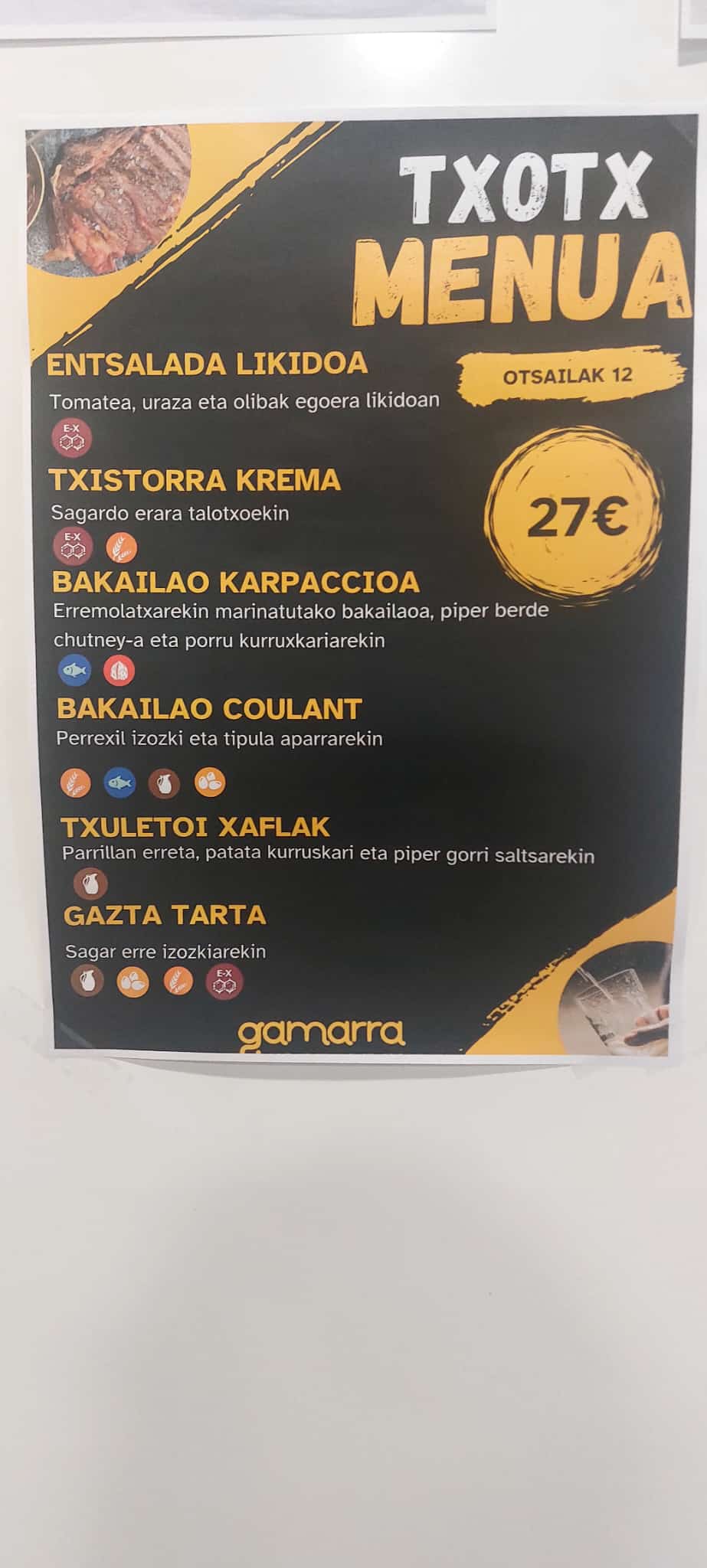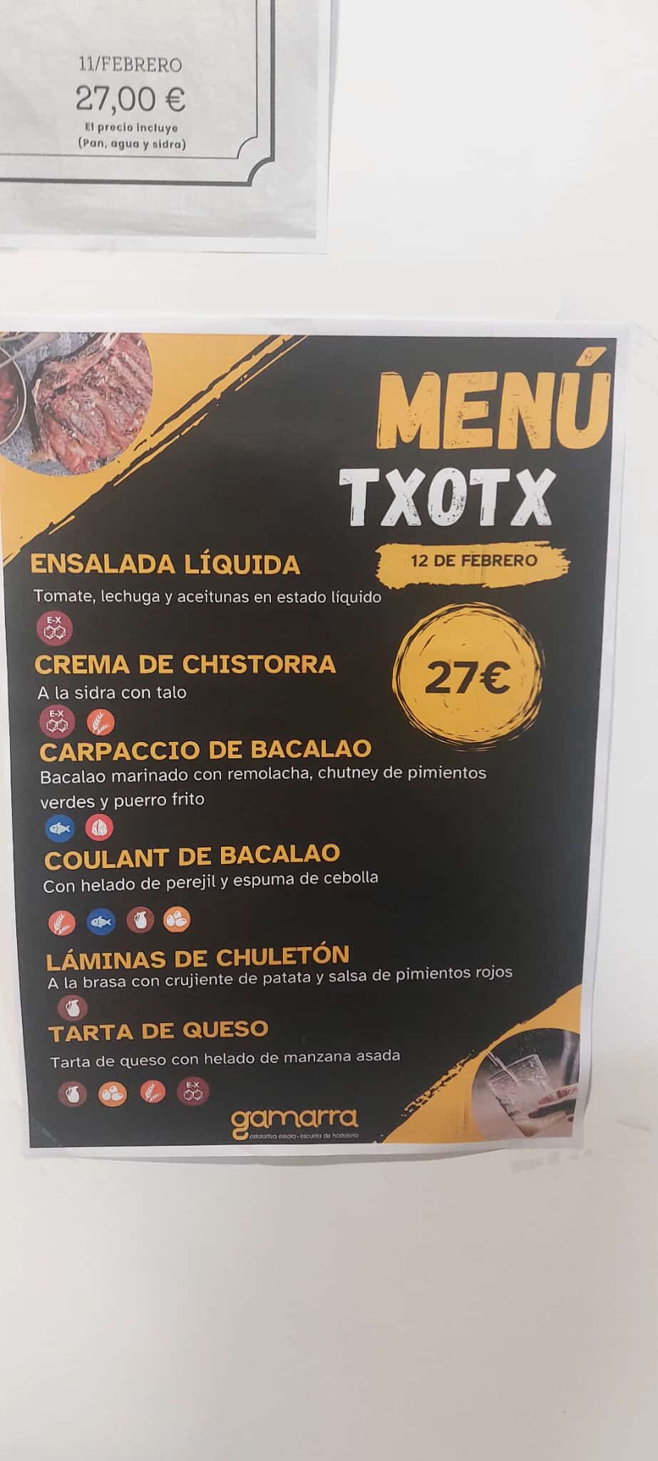 Otsailaren 12tik 14ra eskaintza ezberdinak emango ditu Gamarrako Ostalaritza Eskolak. Sagardotegi menuetan oinarrituta eta gertuko produktuekin, asteartean eta asteazkenean sormenezko menua eskaini da eta ostegunean eta ostiralean sagardotegiko menu klasikoa eskainiko da.